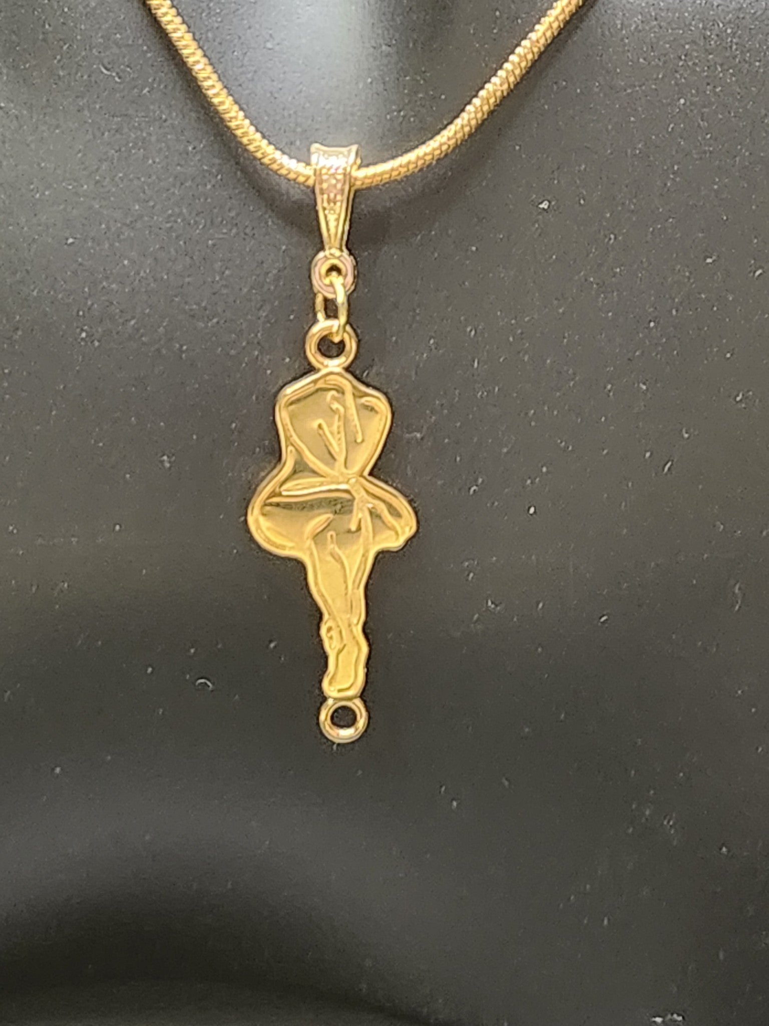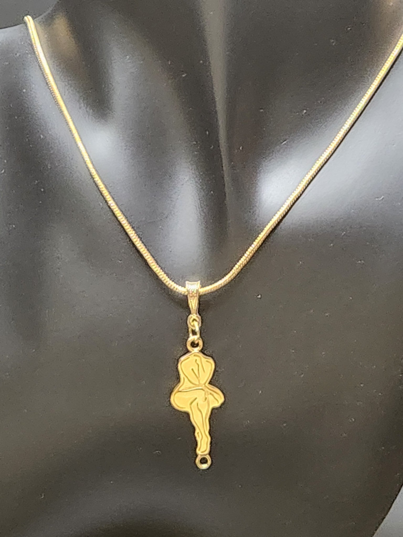 The Essence of Me Gold necklace is a beautiful piece of jewelry featuring detail design of a beautiful silhouette a femininity. Sterling Gold chain adorned with a lobster clasp closure. Create a one-of-a-kind look with this exquisite silhouette of femininity.